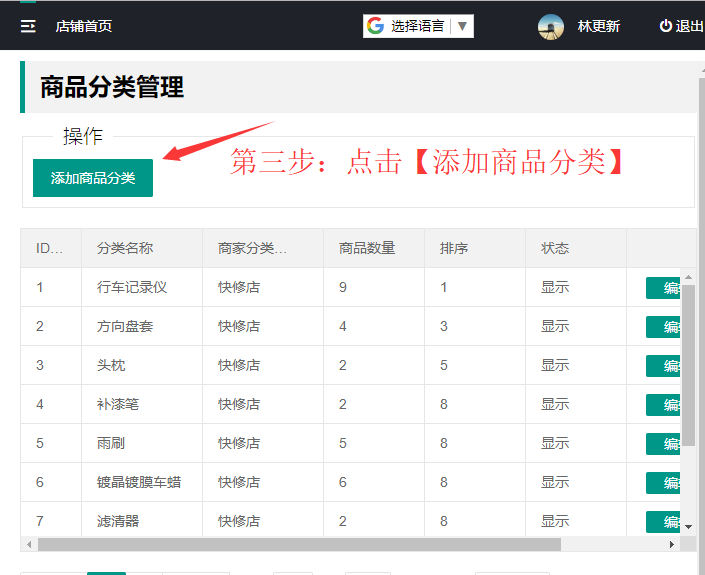 第二步:点击【商品分类管理】,进入商品分类管理界面。