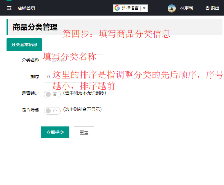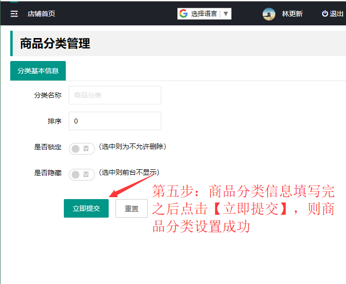 第五步:商品分类信息填写完之后点击【立即提交】,则商品分类设置成功